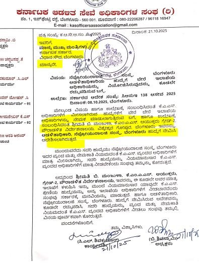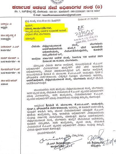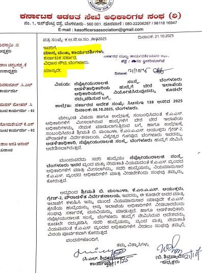 ಮಾನದಂಡಗಳ ಉಲ್ಲಂಘನೆ ಎಲ್ಲಿ..ಹೇಗೆ..?:ಕರ್ನಾಟಕ ಆಡಳಿತ ಸೇವೆ ಅಧಿಕಾರಿಗಳ ಸಂಘ( ಕೆಎಎಸ್) ಮುಖ್ಯಮಂತ್ರಿ ಸಿದ್ದರಾಮಯ್ಯ,ಮುಖ್ಯ ಕಾರ್ಯದರ್ಶಿ ಶಾಲಿನಿ ರಜನೀಶ್ ಮತ್ತು ಆಡಳಿತ-ಸುಧಾರಣಾ ಇಲಾಖೆ ಕಾರ್ಯದರ್ಶಿಗಳಿಗೆ ಬರೆದಿರುವ ಪತ್ರದಲ್ಲಿ ಉಲ್ಲೇಖ ಮಾಡಿರುವ ಸಂಗತಿಗಳ ಪ್ರಕಾರ,ಕೆಎಎಸ್ ಅಧಿಕಾರಿಗಳಿಗೆ ಮೀಸಲಾಗಿರುವ ಹುದ್ದೆಗಳಿಗೆ ಬೇರೆಯವರನ್ನು ನಿಯೋಜನೆ ಮಾಡುವುದು ಸರಿಯಲ್ಲ. ಸರ್ಕಾರದ ಆದೇಶ ಸಂಖ್ಯೆ:ಸಿಆಸುಇ 138ಆಸೇವ 2025 ದಿನಾಂಕ:08-10-2025 ಅನ್ವಯವೇ ಕೆಎಎಸ್ ಅಧಿಕಾರಿಗಳನ್ನೇ ನಿಯೋಜನೆ ಮಾಡಬೇಕು.ಆದರೆ ಪೌರಾಡಳಿತ ನಿರ್ದೇಶನಾಲಯದಲ್ಲಿ ಗ್ರೇಡ್-2 ನ ಕೆಎಂಎಎಸ್ ಅಧಿಕಾರಿಯಾಗಿರುವ ಮಂಜುಳಾ ಅವರನ್ನು ದಿಢೀರ್ ನೇಮಕ ಮಾಡಲಾಗಿದೆ.ಇದು ಎಷ್ಟರ ಮಟ್ಟಿಗೆ ಸರಿ ಎನ್ನುವುದು ಕೆಎಎಸ್ ಅಧಿಕಾರಿಗಳ ಸಂಘದ ಪ್ರಶ್ನೆ.