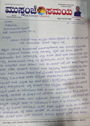 ಮುಸ್ಸಂಜೆ  ಸಮಯ ದಿನಪತ್ರಿಕೆ, ಪೊಲೀಸ್ ವಾಣಿ ಎನ್ನುವಂಥ ಪತ್ರಿಕೆಗಳ  ಸಂಪಾದಕರೂ ಆಗಿರುವ  ರಾಘವೇಂದ್ರಚಾರ್  ಪ್ರೆಸ್ ಕೌನ್ಸಿಲ್ ನ ಸಂಸ್ಥಾಪಕ ಅಧ್ಯಕ್ಷರೂ ಆಗಿರುತ್ತಾರೆ.ಅವರ ಮೇಲೆ  ಬೆಂಗಳೂರಿನ ಪ್ರತಿಷ್ಟಿತ ಸರ್ಕಾರಿ ಆಸ್ಪತ್ರೆಯಲ್ಲಿ ವೈದ್ಯರಾಗಿರುವ ಪ್ರತಿಷ್ಟಿತ ರಾಜಕೀಯ ಕುಟುಂಬ ಹಿನ್ನಲೆಯ ಪ್ರಭಾವಿ ವ್ಯಕ್ತಿಯಾಗಿರುವ ಡಾ.ಮೋಹನ್ ಅವರು ತಮ್ಮ ಬೆಂಬಲಿಗರನ್ನು ಬಿಟ್ಟು ಹೆದರಿಸುವ, ಬೆದರಿಸುವ, ಆಮಿಷ ಒಡ್ಡುವ,ತಮ್ಮ ವಿರುದ್ಧ ಮಾಡುತ್ತಿರುವ ಹೋರಾಟದಿಂದ ಹಿಂದಕ್ಕೆ ಸರಿಯು ವಂತೆ ಒತ್ತಡ ಹೇರುವ ಕೆಲಸ ಮಾಡುತ್ತಿದ್ದಾರೆನ್ನುವುದು ಗಂಭೀರ ಆರೋಪ.ಇದಕ್ಕೆ ಸಂಬಂಧ ಪಟ್ಟಂತೆ  ರಾಘವೇಂದ್ರಾಚಾರ್ ಅವರು ರಾಮಮೂರ್ತಿ ನಗರ ಪೊಲೀಸ್ ಠಾಣೆಗೆ ದೂರನ್ನ ಕೂಡ ನೀಡಿರುತ್ತಾರೆ.ಆ ದೂರಿನ ಪ್ರತಿ ಕನ್ನಡ ಫ್ಲ್ಯಾಶ್ ಗೆ ಲಭ್ಯವಾಗಿದೆ.