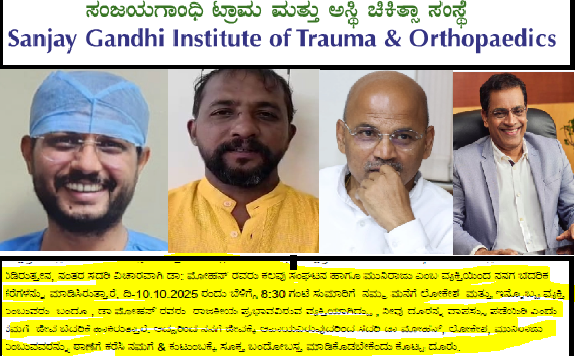 ಬೆಂಗಳೂರಿನ  ಸಂಜಯ್ ಗಾಂಧಿ ಆಸ್ಪತ್ರೆಯಲ್ಲಿ HOD,ಮತ್ತು PROFESSER  ಆಗಿ ಕೆಲಸ ಮಾಡುತ್ತಿರು ವ ಡಾ.ಮೋಹನ್ ಎನ್ ಎಸ್  ಅವರು ಸರ್ಕಾರಿ ವೈದ್ಯರಿಗೆ ನಿಗಧಿಪಡಿಸಿರುವ  ನಿಯಮಗಳನ್ನು ಉಲ್ಲಂಘಿಸುತ್ತಿರುವ ಆಪಾದನೆಗೆ ಸಿಲುಕಿದ್ದಾರೆ.ಸರ್ಕಾರಿ ವೈದ್ಯರು ಕೆಲಸ ಮಾಡಬೇಕಾಗಿರುವುದಕ್ಕೆ ನಿರ್ಧಿಷ್ಟ ನಿಯಮಗಳಿದ್ದರೂ ಅದ್ಯಾವುದನ್ನೂ ಪಾಲಿಸುತ್ತಿಲ್ಲ ಎನ್ನುವುದನ್ನು ಎಲ್ಲಾ  ದಾಖಲೆ ಗಳ ಸಮೇತ ಕಲೆ ಹಾಕಿ ಸರ್ಕಾರದ ಪ್ರಧಾನ ಕಾರ್ಯದರ್ಶಿ ಅವರಿಂದ ಹಿಡಿದು ಸಂಬಂಧಪಟ್ಟ ಇಲಾಖೆಗಳ ಎಲ್ಲಾ ಪ್ರಮುಖರಿಗೂ ದೂರು ಕೊಟ್ಟಿರುತ್ತಾರೆ. ಸಂಜಯ್ ಗಾಂಧಿ ಆಸ್ಪತ್ರೆಯ ನಿರ್ದೇಶಕರಾದ ಡಾ.ಮದನ್  ಬಲ್ಲಾಳ್ ಅವರಿಗೂ ದೂರು ಕೊಟ್ಟ ಹಿನ್ನಲೆ ಯಲ್ಲಿ ಡಾ.ಮೋಹನ್ ಅವರ ಮೇಲಿರುವ ಆಪಾದನೆಗಳ ಸತ್ಯಾಸತ್ಯತೆ ತಿಳಿಯಲು ಉನ್ನತ ಮಟ್ಟದ ತನಿಖಾ ಸಮಿತಿ ರಚಿಸಿರುವು ದಾಗಿ ಹೇಳಿದ್ದಾರಲ್ಲದೇ ಡಾ.,ಮೋಹನ್ ಅವರಿಗೆ ವಿವರಣೆ ಹಾಗೂ ಕಾರಣ ಕೇಳಿ ಎರಡು ನೊಟೀಸ್ ಗಳನ್ನು ಸರ್ವ್ ಮಾಡಿರುವುದಾಗಿ ಹೇಳಿದ್ದಾರೆ.